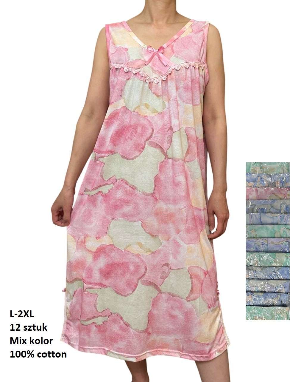 Koszule nocne DAMSKA , Size l-2xl, paczka 12szt ,mix kolor